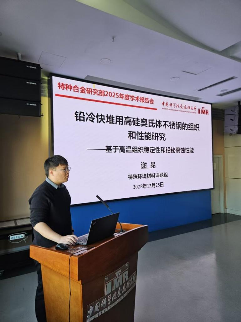 特种合金研究部年度学术报告会每年举办一次,会议主题一般聚焦核用特种合金领域,旨在锻炼培养青年职工。自去年起,戎利建主任作为资深研究员带头作报告,既帮助青年骨干拓宽学术视野,更让他们直观感悟到资深前辈埋头钻研、率先垂范的优良作风。本年度报告会,罗兴宏、姜海昌两位研究员接续开讲。该平台不仅有效增进了各课题组间的学术互动,更为全体科研人员搭建起了高效的交流协作桥梁。