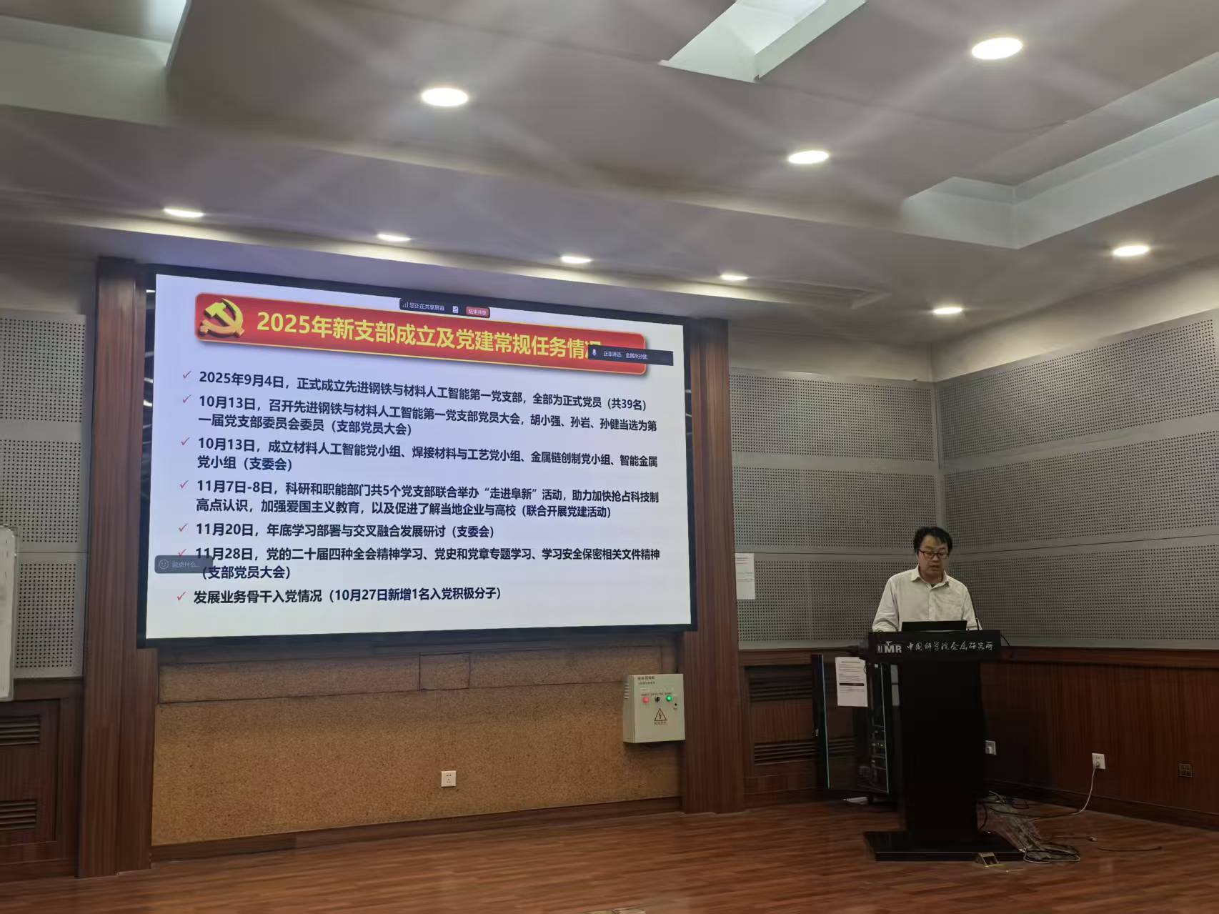 为全面总结2025年度党建工作,扎实开展民主评议与评优推荐工作,2026年1月5日,先进钢铁与材料人工智能第一党支部在李薰楼468会议室召开了支部党员大会。会议由党支部书记胡小强同志主持。