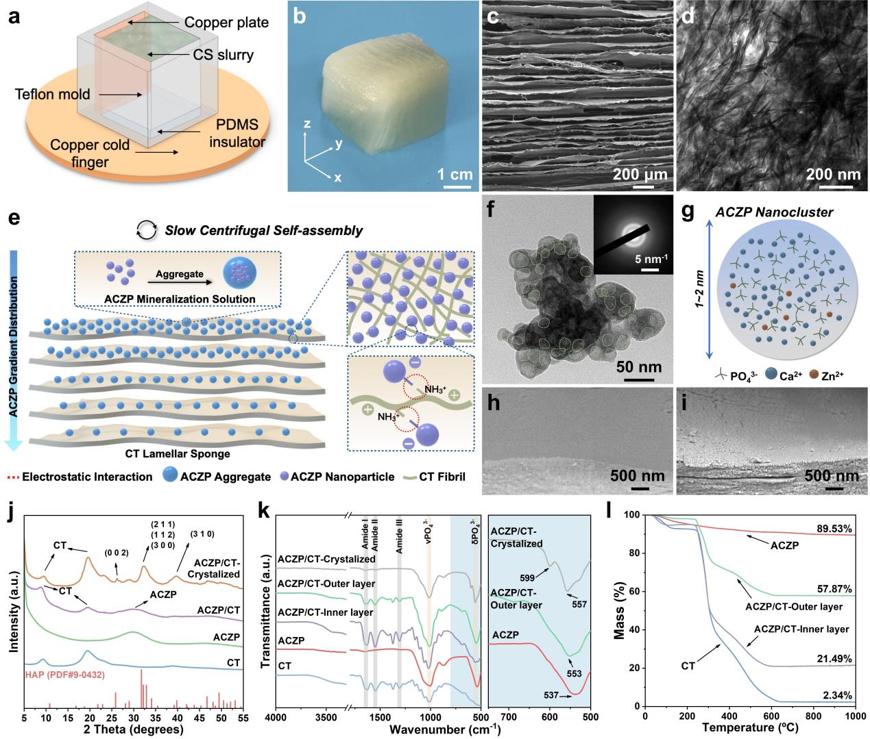 图2 仿生ACZP/CT支架制备过程及相组成、微观结构表征