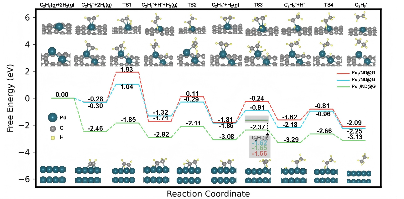 图4. Pd2/ND@G催化乙炔半加氢反应示意图。