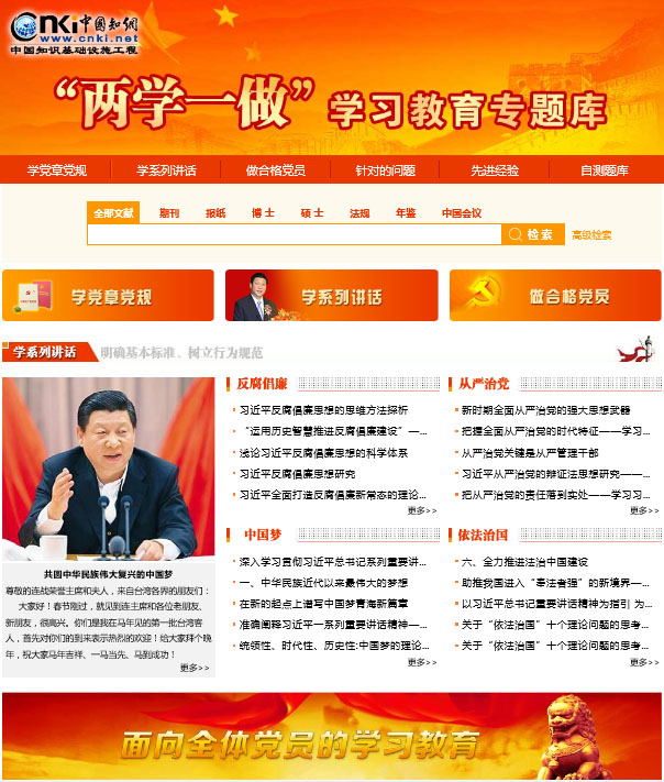 内容:中国知网党建研究资源中心按照“两学一做”学习教育活动要求,整合中国知识资源总库以及宣讲家视频、ppt等资源,收集各级党建智囊机构专家解读,制作了《“两学一做”学习教育专题知识库》,是“两学一做”学习教育辅导的重要工具,也是增强四种意识,思想上政治上行动上与中央 保持高度一致的行动指南,对党员干部进行“两学一做”学习教育具有重要的参考价值。