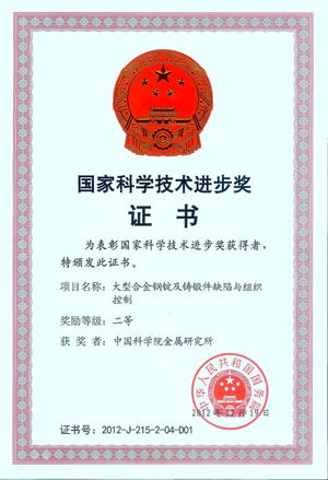 1月18日,2012年度国家科学技术奖励大会在北京人民大会堂隆重举行,党和国家领导人出席大会并为获奖代表颁奖。我所李殿中、李依依等人承担的“大型合金钢锭及铸锻件缺陷与组织控制”项目获国家科技进步二等奖。